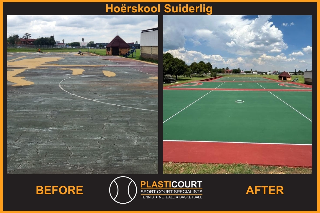 PLASTICOURT specializes in the resurfacing of tennis, netball and basketball courts but also provides services such as earthworks, fencing and building of courts. We also manufacture posts and related hardware for these sports inhouse which allows us to offer realistic cost reductions to our clients as well as certain bespoke offerings.